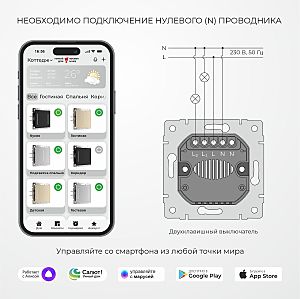 | Артикул | W4523641/ Умный сенсорный выключатель двухклавишный (дымчатый) |
