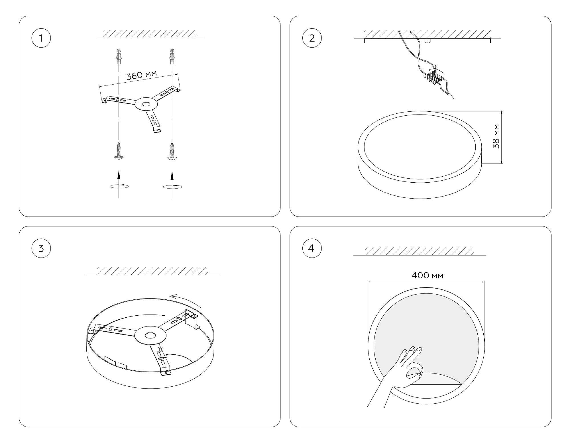 Допускается отличие страны-изготовителя, указанной в характеристиках. Линии производства могут находиться в нескольких государствах. Это не влияет на качество изготовления товара: все заводы данного бренда работают по общим стандартам, а готовые изделия проходят соответствующий контроль.Россия Коллекция Wall ЦветЦвет арматуры Черный Цвет Черный Материал арматуры Металл, Дерево РазмерыВысота (мм) 38 Диаметр (мм) 400 Ширина (мм) 400 ЭлектрикаКоличество ламп (шт) 1 Цоколь LED Тип лампы Светодиодная Мощность лампы (Вт) 25 Напряжение (В) 220 Световой поток 2000 Срок службы, ч 50000 Цветовая температура 3000-6400 Площадь освещения 8-16 Дополнительная информацияСпособ крепления Планка Степень защиты (IP) IP20 Техническая оссобеность Полностью светодиодная, Регулировка цветовой температуры -