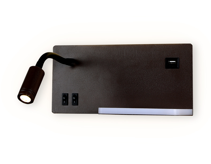 Настенный светодиодный светильник с кнопкой, полкой и USB портом из коллекции WALLERS. Модель FW293 представлена в современном стиле Техно. Светильник оформлен в геометрической форме, выполнен в кофейном и черном цвете, из металла и акрила. Эта модель оснащена встроенными светодиодами, благодаря чему вы забудете о замене дополнительных ламп. Эта модель будет прекрасным дополнением в гостиной, спальне или детской комнате.