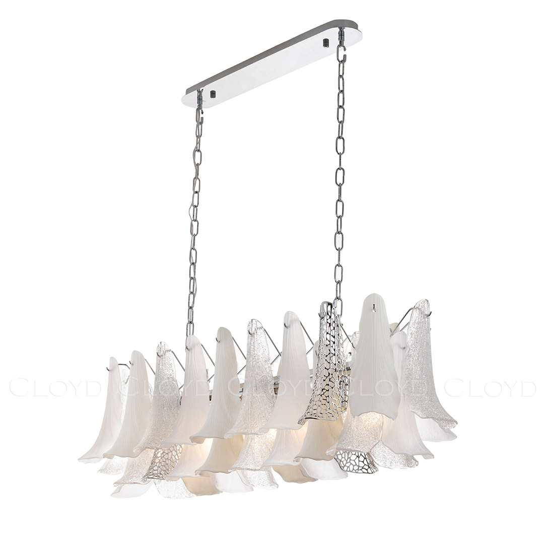 Люстра подвесная Cloyd WASABI (Клойд Васаби) C8 / арт.11451, ширина: 111 см. высота: 34 см (подвес в комплекте - до 50 см) глубина: 38 см, источник света: E14 (LED ≈ 6 Вт) х 8 шт, цвет металла - хром блестящий. Гарантия: 1 год.