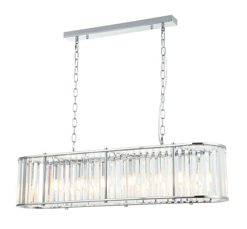 Люстра подвесная вытянутой формы из коллекции Washer выполнена из металла, гальванизированного в цвет хрома, и декорирована прозрачным хрусталем высшей категории прямоугольной формы. Каркас отделан металлическими кантами и дополнительно закрепленными металлическими стержнями, гальванизированными в цвет арматуры.