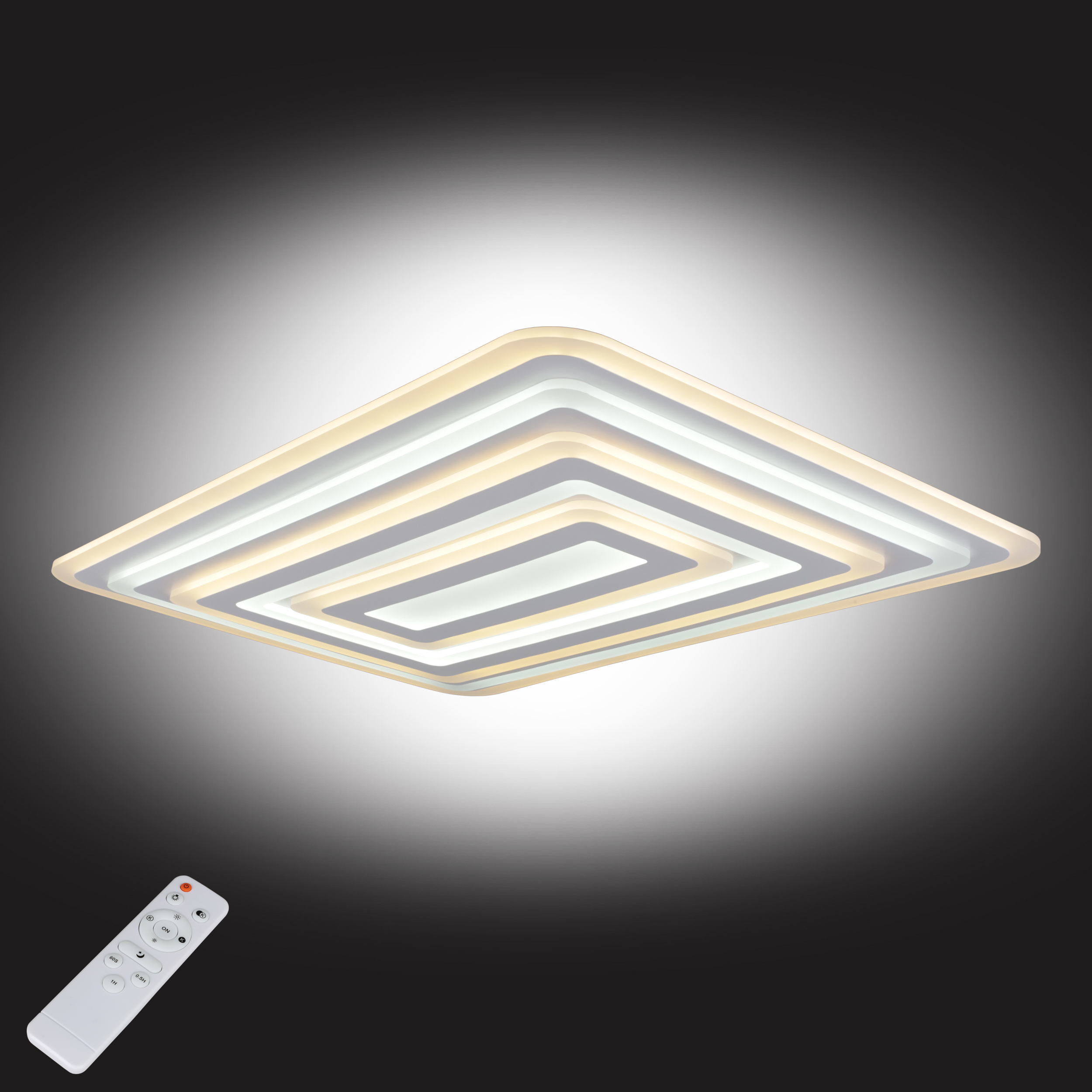 Допускается отличие страны-изготовителя, указанной в характеристиках. Линии производства могут находиться в нескольких государствах. Это не влияет на качество изготовления товара: все заводы данного бренда работают по общим стандартам, а готовые изделия проходят соответствующий контроль.Китай Коллекция white ЦветЦвет арматуры Белый Цвет Белый Материал арматуры Металл Цвет плафона Белый Материал плафона Акрил, Металл РазмерыВысота (мм) 70 Длина (мм) 960 Ширина (мм) 650 ЭлектрикаКоличество ламп (шт) 1 Цоколь LED Мощность лампы (Вт) 150 Дополнительная информацияСпособ крепления Планка Техническая оссобеность Ночной режим, Таймер, Регулировка яркости, Полностью светодиодная, Регулировка цветовой температуры Тип управления Пульт ДУ -