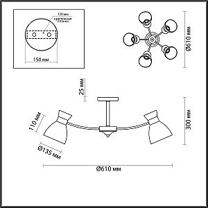 Допускается отличие страны-изготовителя, указанной в характеристиках. Линии производства могут находиться в нескольких государствах. Это не влияет на качество изготовления товара: все заводы данного бренда работают по общим стандартам, а готовые изделия проходят соответствующий контроль.Италия Коллекция Wilma ЦветЦвет арматуры золотой Цвет Золото Материал арматуры Металл Цвет плафона Белый Материал плафона Стекло РазмерыВысота (мм) 300 Диаметр (мм) 610 Ширина (мм) 610 ЭлектрикаКоличество ламп (шт) 5 Цоколь E27 Тип лампы Накаливания Мощность лампы (Вт) 40 Общая мощность (Вт) 300 Напряжение (В) 220 Дополнительная информацияСпособ крепления Планка Степень защиты (IP) IP20 Вес (Кг) 3,100 -