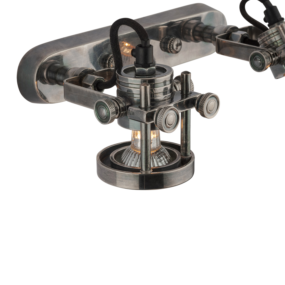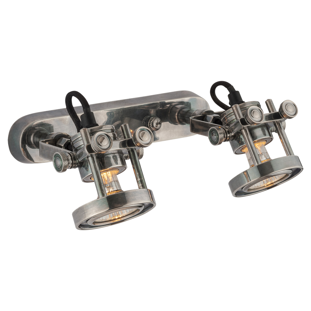 Допускается отличие страны-изготовителя, указанной в характеристиках. Линии производства могут находиться в нескольких государствах. Это не влияет на качество изготовления товара: все заводы данного бренда работают по общим стандартам, а готовые изделия проходят соответствующий контроль.Россия ЦветЦвет арматуры состаренное серебро Цвет Серебро Материал арматуры Латунь РазмерыДлина (мм) 170 Диаметр (мм) 80 Ширина (мм) 250 ЭлектрикаКоличество ламп (шт) GU10/25Вт Цоколь GU10 Мощность лампы (Вт) 25 Дополнительная информацияВес (Кг) 2.3 Техническая оссобеность Поворотный -
