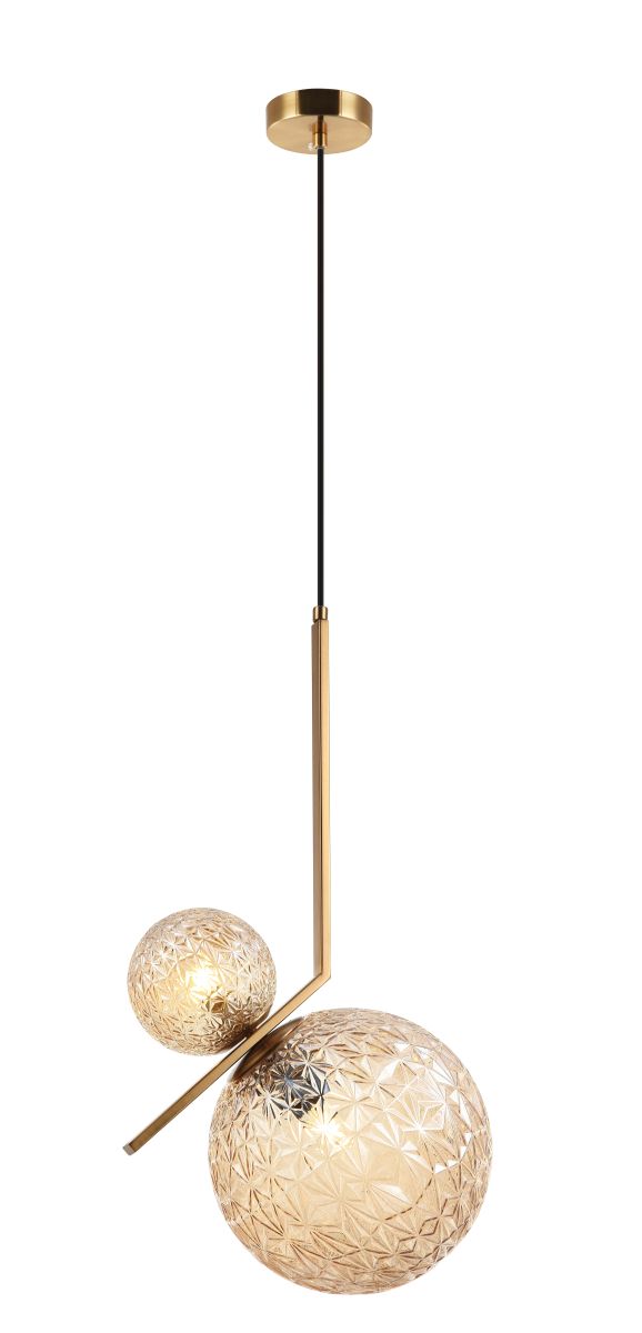 Светильник подвесной из коллекции Zaira выполнен из металла, гальванизированного в цвет бронзы, и декорирован двумя плафонами разного диаметра из фактурного стекла янтарного цвета. Плафоны устанавливаются за счет винтовой резьбы. Благодаря хорошей центровке плафонов, светильник висит строго вертикально. Премиальное качество и неповторимыи? дизаи?н светильников идеально подои?дут в современные дизайнерские интерьеры.