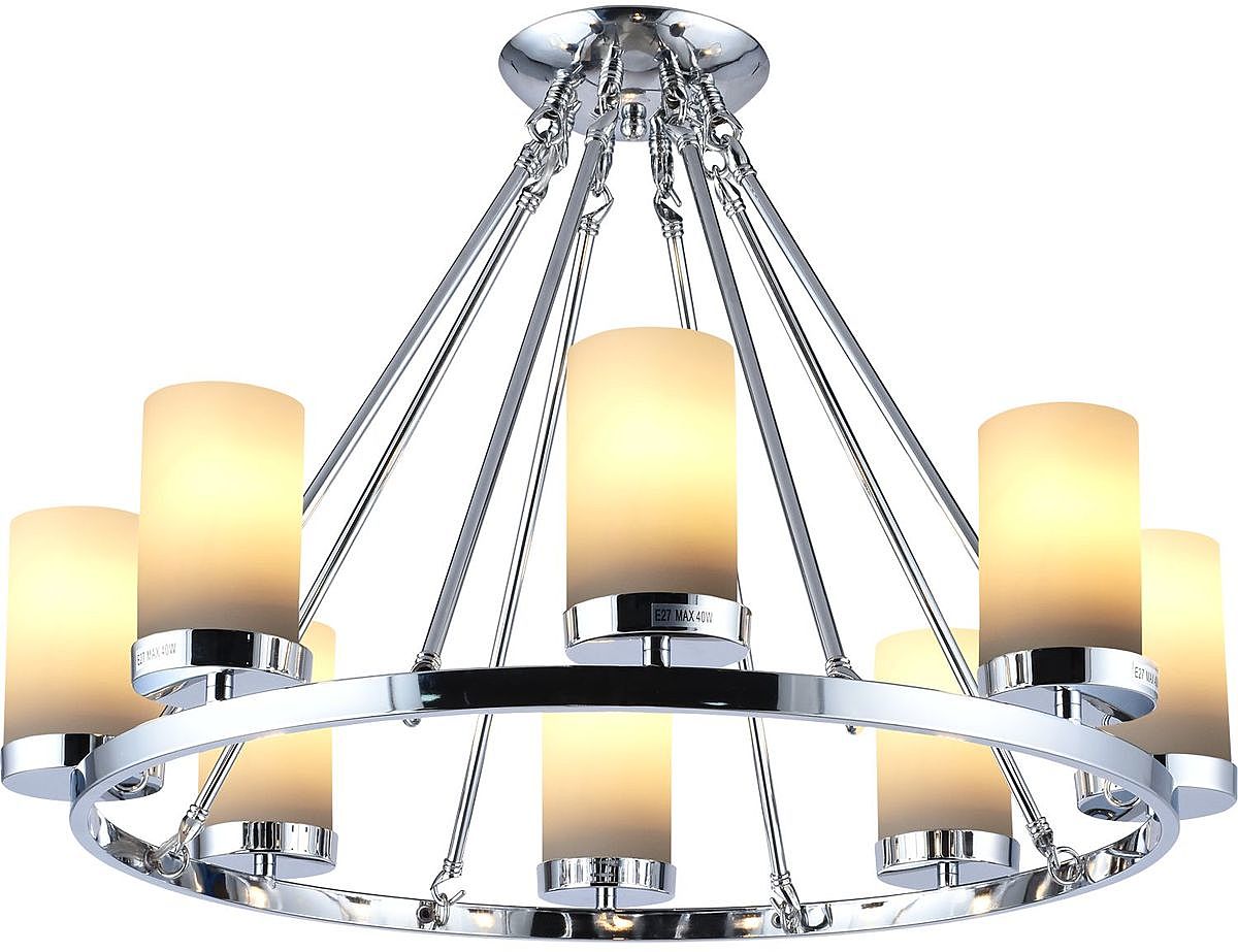 Люстра подвесная 2030/09/08C Stilfort серии Zelt выполнена в стиле модерн. Арматура изготовлена из окрашенного металла в цвете "хром". Плафоны люстры стеклянные.