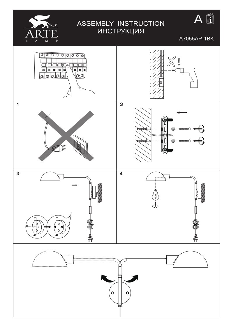 Производитель Arte Lamp Артикул A7055AP-1BK Страна