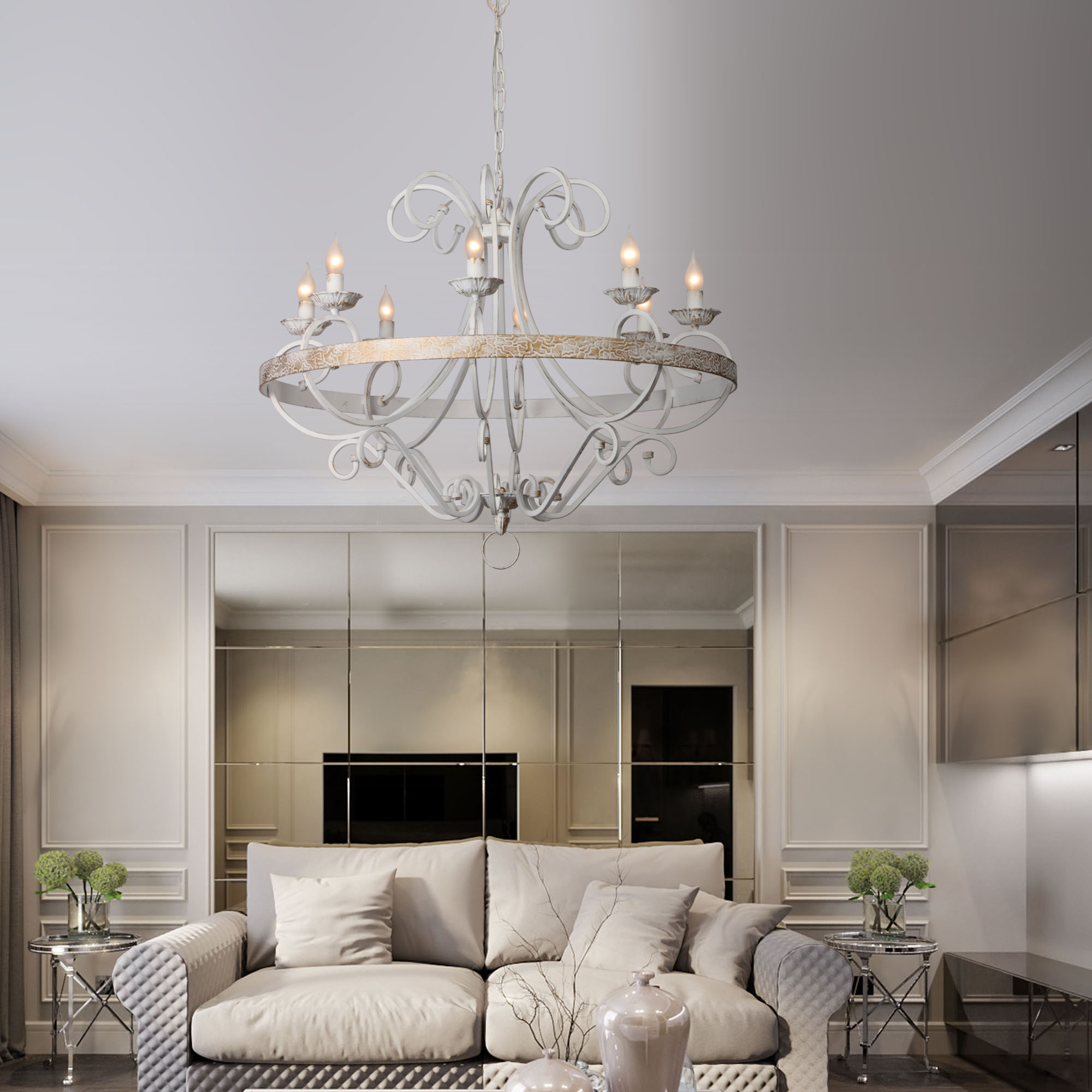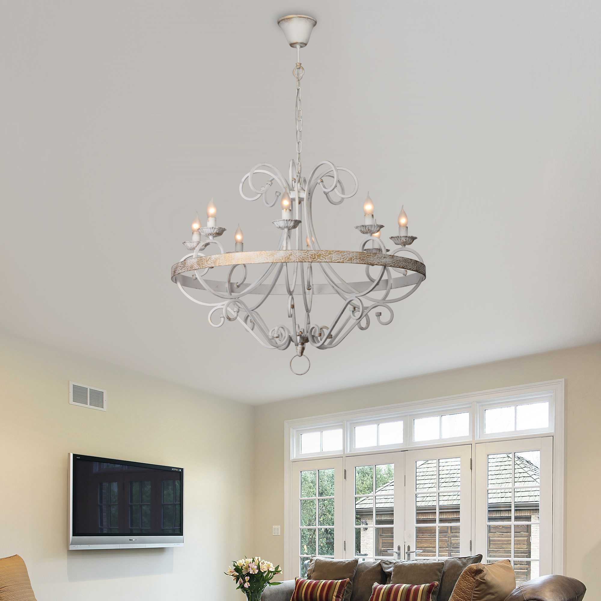 Допускается отличие страны-изготовителя, указанной в характеристиках. Линии производства могут находиться в нескольких государствах. Это не влияет на качество изготовления товара: все заводы данного бренда работают по общим стандартам, а готовые изделия проходят соответствующий контроль.Россия Коллекция Zoe ЦветЦвет арматуры Белый Цвет Белый Материал арматуры Металл РазмерыВысота (мм) 1000 Диаметр (мм) 900 Ширина (мм) 900 ЭлектрикаКоличество ламп (шт) 8 Цоколь E14 Мощность лампы (Вт) 60 Общая мощность (Вт) 480 Площадь освещения 24 Дополнительная информацияТип подвеса На цепи -
